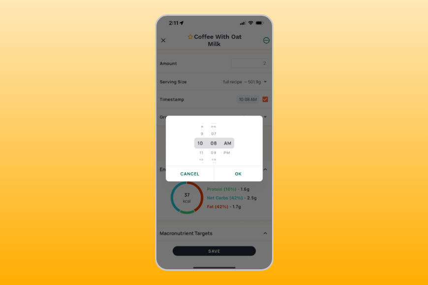 Upgrading to Gold will grant you access to our Timestamps feature, letting you set the time for any piece of data you log on Cronometer,