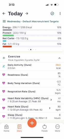 Once you have data importing from your ŌURA account, don’t just let it sit around on your Diary screen!