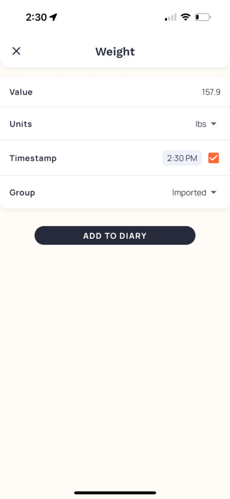 Once you have data importing from Apple Health, don’t just let it sit around on your Diary screen!