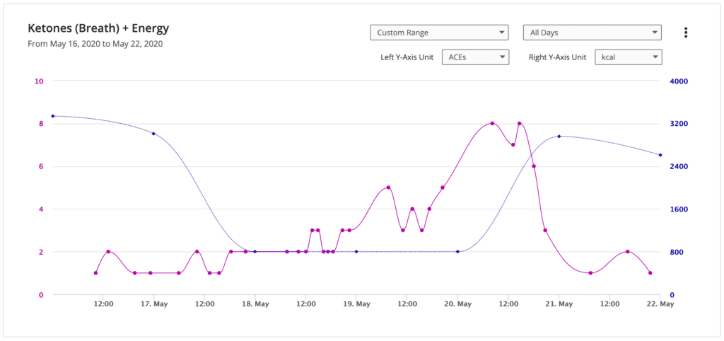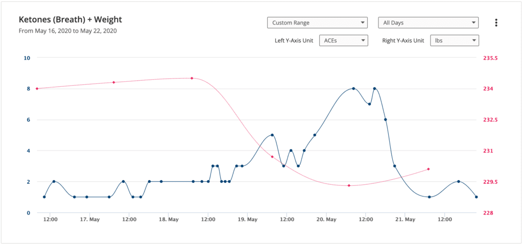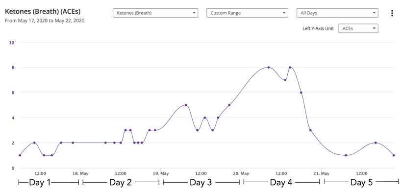 The next day (Day 3), I woke up with a reading of 5 ACEs, which is the approximate threshold for ketosis. The very low-calorie diet (VLCD) I was following put me into ketosis after 24 hours.