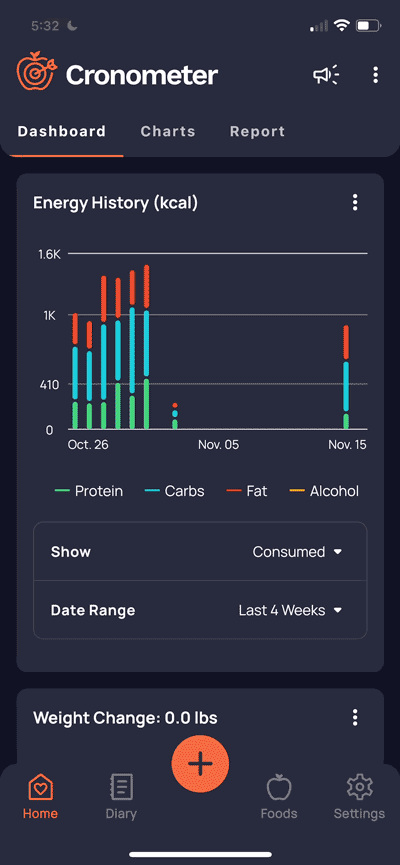 Whether you’re on the web or mobile app, the sign up process for Cronometer will take you through similar questions as MyFitnessPal’s. We ask for some personal details so that we can set your energy (calorie) targets based on your weight goal. Many of our users, however, will want to set a custom energy target.