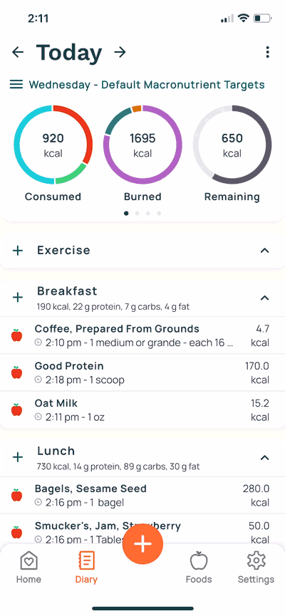 Another little known trick for Gold users is the ‘create meal/recipe from selection’ functionality. From your Diary screen, click the three dot menu, select ‘multi-select’, select all of the ingredients you want in your Custom Meal or Custom Recipe, click the three dot menu again and select ‘create meal/recipe from selection’.